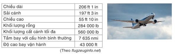 Hãy đổi các thông số kĩ thuật trên sang các đơn vị đo lường quen thuộc là mét (riêng tầm bay đổi sang kilômét) và kilôgam (làm tròn kết quả đến hàng đơn vị).