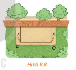 Xét bài toán rào vườn ở tình huống mở đầu. Gọi x mét \((0 < x < 10)\)là khoảng cách từ điểm cắm cọc đến bờ tường (H.6.8). Hãy tính theo x: