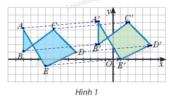 Khi đó phép tịnh tiến theo \({\rm{\vec v}} = {\rm{\vec u}}\) biến các điểm A, B, C, D, E thành điểm A’, B’, C’, D’, E’.