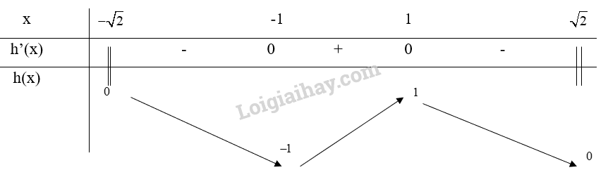 \(h'(x) = 0 \Leftrightarrow \left[ \begin{array}{l}x = 1\\x =  – 1\end{array} \right.\)