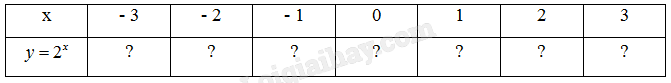 a) Tính \(y = {2^x}\) khi x lần lượt nhận các giá trị – 1; 0; 1. Với mỗi giá trị của x có bao nhiêu giá trị của \(y = {2^x}\) tương ứng?