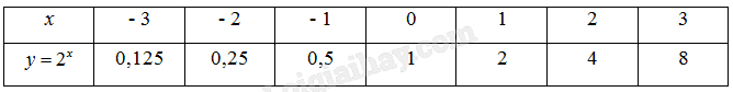 a) Tính (y = {2^x}) khi x lần lượt nhận các giá trị – 1; 0; 1. Với mỗi giá trị của x có bao nhiêu giá trị của (y = {2^x}) tương ứng?