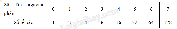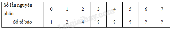 Lập bảng sau đây để tính số tế bào được tạo ra từ một tế bào ban đầu sau những lần nguyên phân.