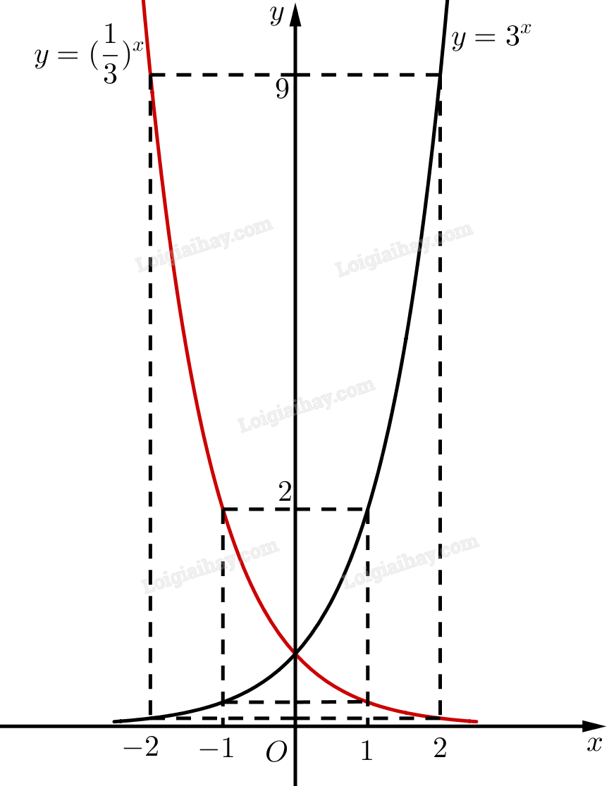 Trên cùng một hệ trục toạ độ, vẽ đồ thị các hàm số \(y = {3^x}\) và \(y = {\left( {\frac{1}{3}} \right)^x}\).