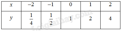 b) Với \(x = 0:y = 1 = {2^0}\)