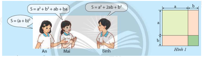 a) Ba bạn An, Mai và Bình viết biểu thức biểu thị tổng diện tích (S) của các phần tô màu trong Hình 1 như sau: