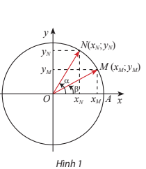 Quan sát Hình 1. Từ hai cách tính tích vô hướng của vectơ \(\overrightarrow {OM} ,\overrightarrow {ON} \) sau đây:
