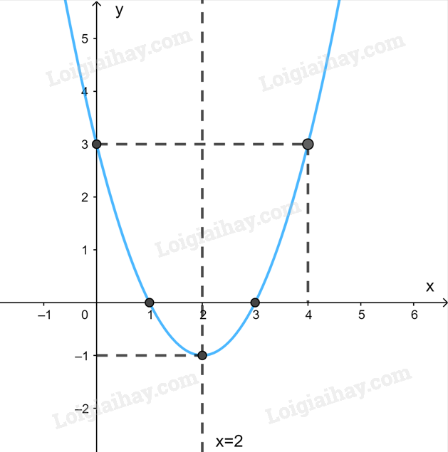 Ta có: \({x^2} – 4x + 3 = 0 \Leftrightarrow \left[ \begin{array}{l}x = 3\\x = 1\end{array} \right.\). Do đó, giao điểm của đồ thị hàm số với trục hoành là các điểm \(\left( {3;0} \right);\left( {1;0} \right)\).