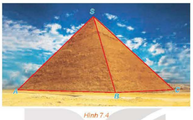 Tính (gần đúng) góc tạo bởi cạnh bên SC và cạnh đáy AB của kim tự tháp (H.7.4).