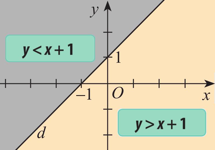 Xét điểm O(0;0) ta có: \(0 < 0 + 1\) hay \({y_O} < {x_O} + 1\).