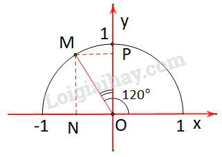 Gọi M là điểm trên nửa đường tròn đơn vị sao cho \(\widehat {xOM} = {120^o}\)