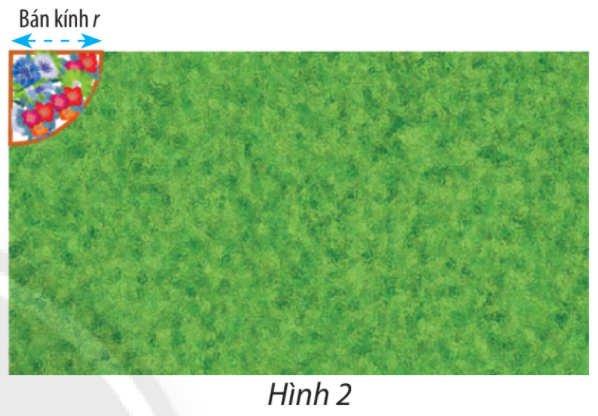 Ở góc của miếng đất hình chữ nhật, người ta làm một bồn hoa có dạng một phần tư hình tròn với bán kính r (Hình 2). Bán kính bồn hoa có kích thước từ 0,5 m đến 3 m.