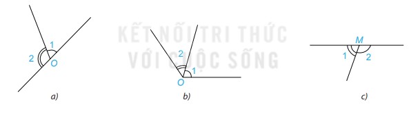 Xét hình c: \(\widehat {{M_1}} \) và \( \widehat {{M_2}}\) là hai góc kề bù vì 2 góc này có một cạnh chung, hai cạnh còn lại là hai tia đối nhau.