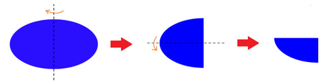 Tưởng tượng elip có phương trình chính tắc trên mặt phẳng tọa độ, khi đó ta chỉ cần gập theo các trục tọa độ.