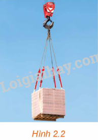 Trong Hình 2.2, lực căng dây (được tạo ra bởi sức nặng của kiện hàng) được thể hiện bởi các đoạn thẳng có mũi tên màu đỏ.