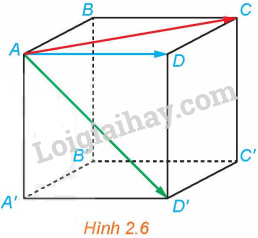 Cho hình lập phương ABCD.A’B’C’D’ (H.2.6). Trong các vectơ \(\overrightarrow {AC} ,\overrightarrow {AD} ,\overrightarrow {AD’} \):