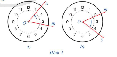 b) Chiều quay từ tia Om đến tia Oy trong Hình 3b là chiều quay cùng chiều kim đồng hồ.