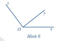 Cho góc ( hình học) xOz, tia Oy nằm trong góc xOz ( Hình 8). Nêu mối liên hệ giữa số đo góc xOz và tổng số đo của hau góc xOy và yOz.