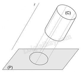 Lấy các điểm thuộc đường tròn đáy của hình trụ và xác định hình chiếu của các điểm đó trên mặt phẳng (P) theo phương . Khi đó ta được hình chiếu song song của đường tròn (C) trên mặt phẳng (P) theo phương  như hình vẽ dưới đây.
