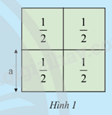 Bốn ô cửa hình vuông diện tích \(\frac{1}{2}{m^2}\) ghép thành cửa sổ Hình 1. a) Hai bạn An và Mai tính độ dài cạnh a (m) của mỗi ô cửa.