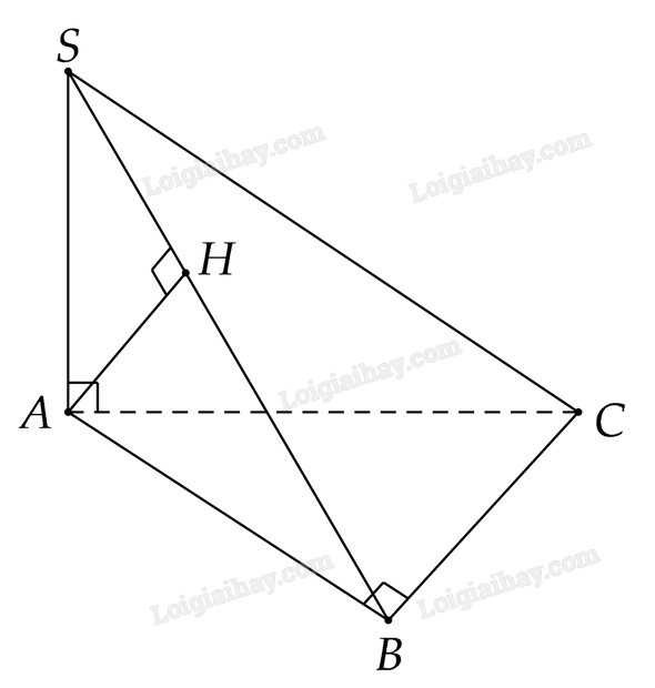 Ta có \(\left\{ \begin{array}{l}AH \bot SB\\AH \bot BC\end{array} \right. \Rightarrow AH \bot \left( {SBC} \right)\)
