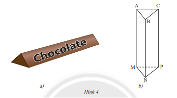 Hộp kẹo socola (Hình 4a) được vẽ lại như hình 4b có dạng hình lăng trụ đứng. Hãy chỉ rõ mặt đáy, mặt bên, cạnh bên của hình lăng trụ đó.