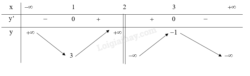 Hàm số \(y = \frac{{ – {x^2} + 5x – 7}}{{x – 2}}\) đồng biến trên khoảng \(\left( {1;2} \right)\) và \(\left( {2;3} \right)\).