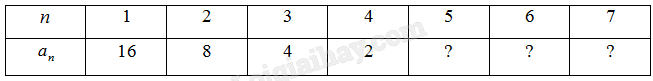 Cho biết dãy số (left( {{a_n}} right)) được xác định theo một quy luật nào đó và bốn số hạng đầu tiên của nó được cho như ở bảng dưới đây:
