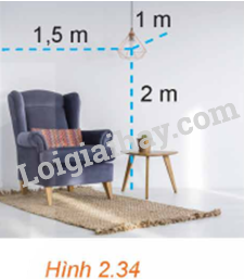Góc căn phòng trong Hình 2.34 gợi lên hình ảnh về hệ trục tọa độ Oxyz trong không gian.