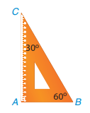 Quan sát ê ke có góc 60\(^\circ \)( H.9.2). Kí hiệu đỉnh góc vuông là A, đỉnh góc 60\(^\circ \) là B và đỉnh góc 30\(^\circ \) là C.