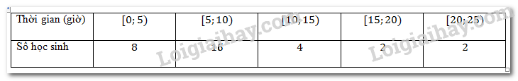 Tìm hiểu thời gian xem ti vi trong tuần trước (đơn vị: giờ) của một số học sinh thu được kết quả sau: