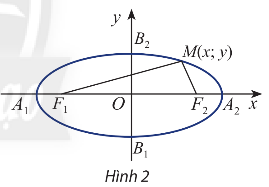 Cho elip (E) có các tiêu điểm \({F_1}\) và \({F_2}\) và đặt \({F_1}{F_2} = 2c\). Chọn hệ trục tọa độ Oxy sao cho \({F_1}( – c;0)\) và \({F_2}(c;0)\)