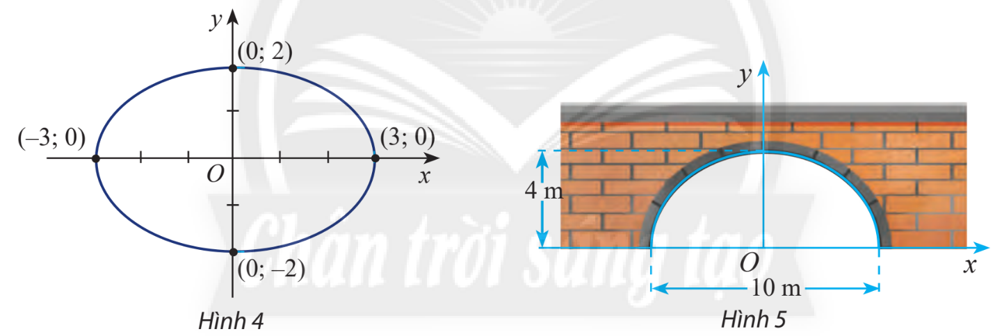 Viết phương trình chính tắc của elip trong hình 4 Một đường hầm có mặt các hình nửa Elip cao 4 m, rộng 10 m (hình 5). Viết phương trình chính tắc của elip đó.