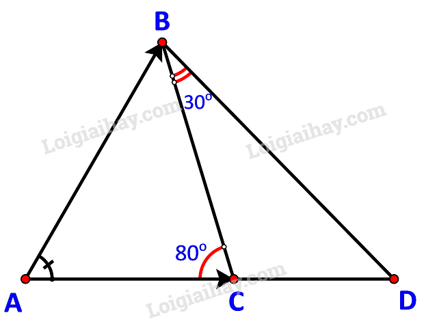 Vậy số đo góc giữa hai vectơ \(\overrightarrow {BC} \) và \(\overrightarrow {BD} \), \(\overrightarrow {DA} \) và \(\overrightarrow {DB} \) lần lượt là \({30^o},{50^o}\)