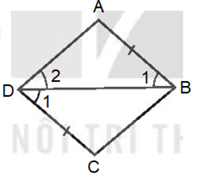 Mặt khác, \(\widehat {{D_1}} = \widehat {{D_2}}\) hay DB là tia phân giác của \(\widehat {A{\rm{D}}C}\)
