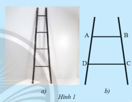 Tứ giác \(ABCD\) (Hình 1b) là hình vẽ minh họa một phần của chiếc thang ở Hình 1a. Nêu nhận xét của em về hai cạnh \(AB\)\(CD\) của tứ giác này.