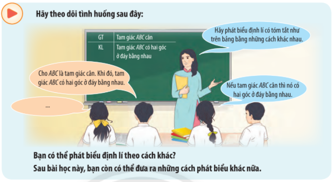 Định lí trên bảng là một mệnh đề kéo theo, nên có thể phát biểu dạng: