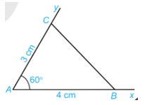 Vẽ xAy = 60°. Lấy điểm B trên tia Ax và điểm C trên tia Ay sao cho: AB = 4 cm, AC = 3 cm. Nối điểm B với điểm C ta được tam giác ABC (H.4.27)