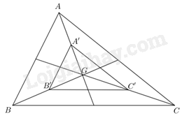 Vì A’, B’, C’ lần lượt là trung điểm của AG, BG, CG nên A’B’, B’C’, A’C’ lần lượt là đường trung bình của các tam giác AGB, BGC, AGC.