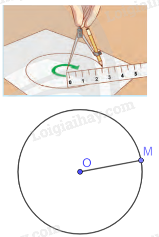 Mở 1 chiếc compa sao cho hai đầu compa cách nhau một khoảng R cho trước. Tì đầu nhọn của compa lên một điểm cố định trên tờ giấy, xoay compa để đầu bút M của compa vạch trên giấy một đường cong. Nêu nhận xét về các khoảng cách từ một điểm M tuỳ ý trên đường cong vừa vẽ đến điểm O.
