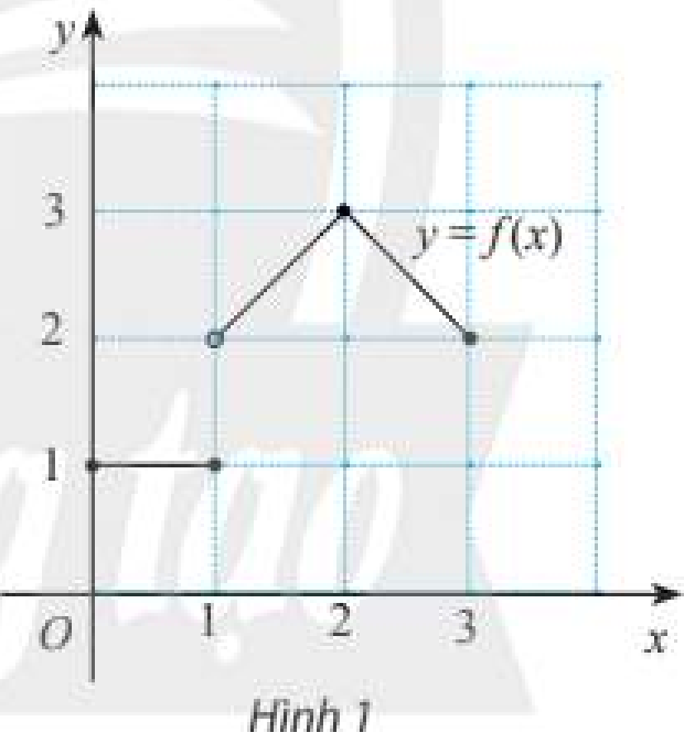 Cho hàm số \(y = f\left( x \right) = \left\{ {\begin{array}{*{20}{c}}1&{khi\,\,0 \le x \le 1}\\{1 + x}&{khi\,\,1 < x \le 2}\\{5 – x}&{khi\,\,2 < x \le 3}\end{array}} \right.\) có đồ thị như Hình 1.
