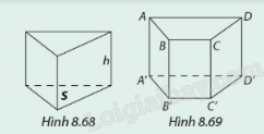 Viết công thức tính thể tích khối lăng trụ đứng tam giác (Hình 8.68) và khối lăng trụ đứng tứ giác (Hình 8.69) theo diện tích đáy S và đường cao h của nó.