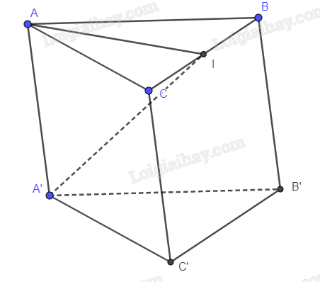 \(V = {S_{\Delta ABC}}.A’I = \frac{1}{2}AI.BC.A’I = \frac{1}{2}.\frac{{\sqrt 3 }}{2}a.a.\frac{1}{2}a = \frac{{\sqrt 3 }}{8}{a^3}\)