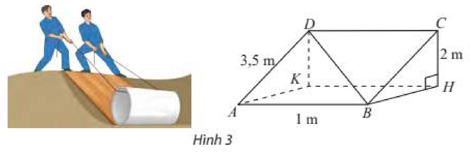 Một tấm ván hình chữ nhật \(ABCD\) được dùng làm mặt phẳng nghiêng để kéo một vật lên khỏi hố sâu 2 m. Cho biết \(AB = 1\,m,AD = 3,5{\rm{ }}m\). Tính góc giữa đường thẳng \(BD\) và đáy hồ.