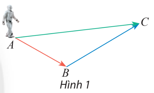 Một robot thực hiện liên tiếp hai chuyển động có độ dịch chuyển lần lượt được biểu diễn bởi 2 vectơ \(\overrightarrow {AB} \) và \(\overrightarrow {BC} \) (Hình 1). Tìm vectơ biểu diễn sự dịch chuyển của rô bốt sau hai sự dịch chuyển trên.