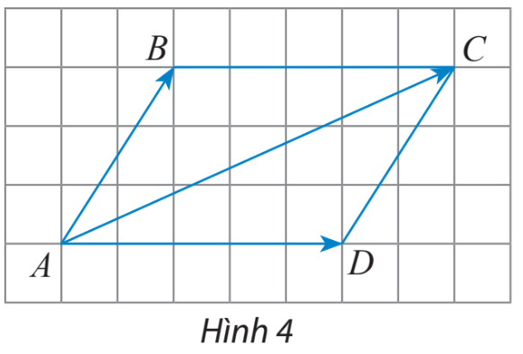 Một robot thực hiện liên tiếp hai chuyển động có độ dịch chuyển lần lượt được biểu diễn bởi 2 vectơ Cho hình bình hành ABCD (Hình 4). Chứng minh rằng: Cho hình thang ABCD có đáy là AB và CD. Cho biết