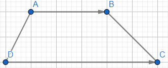 ABCD là hình thang nên AB//DC. Mặt khác vectơ \(\overrightarrow {AB} \) và vectơ \(\overrightarrow {DC} \) đều có hướng từ trái sang phải, suy ra vectơ \(\overrightarrow {AB} \) và vectơ \(\overrightarrow {DC} \)cùng hướng