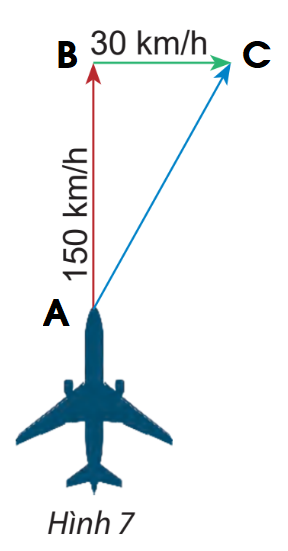 Một máy bay có vận tốc chỉ theo hướng bắc, vận tốc gió là một vectơ theo hướng đông như hình 7. Tính độ dài vectơ tổng của hai vectơ nói trên.