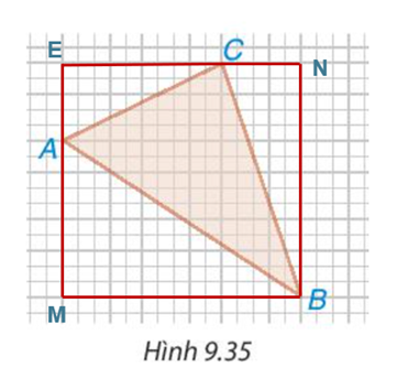 Trên giấy kẻ ô vuông (cạnh ô vuông bằng 1 cm), cho các điểm A, B, C như Hình 9.35. Tính độ dài các cạnh của tam giác ABC.