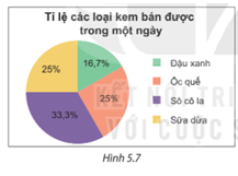 Biểu đồ Hình 5.7 cho biết tỉ lệ các loại kem bản được trong một ngày của một cửa hàng kem.